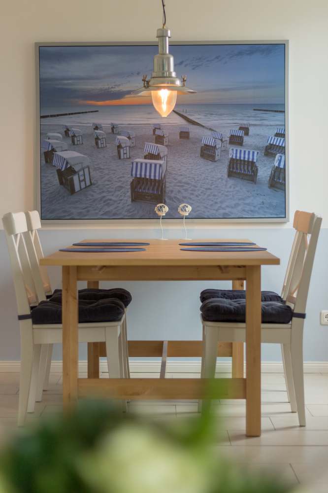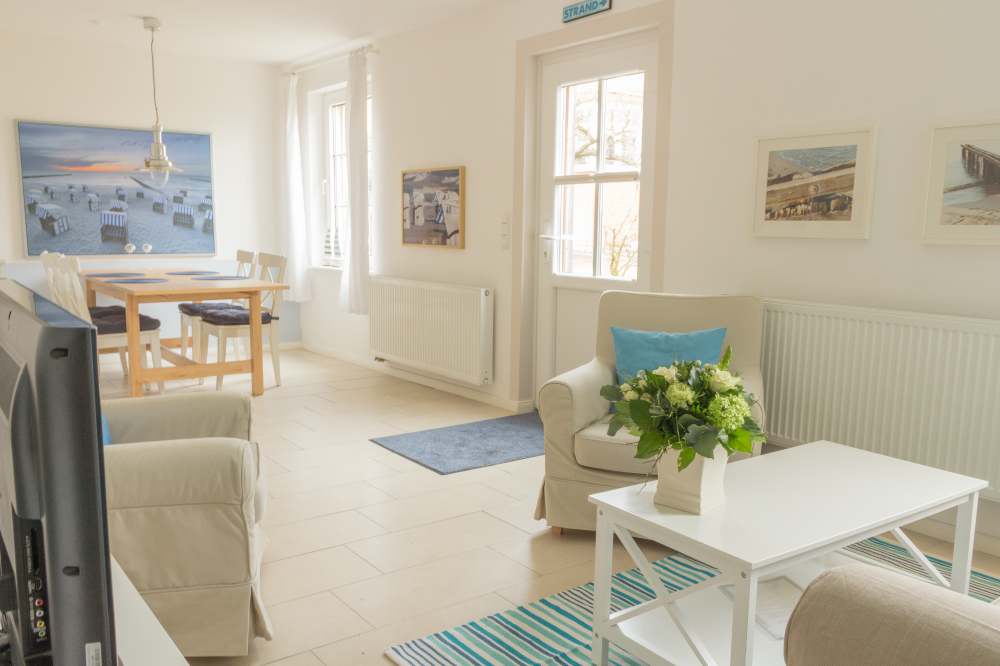 Im Essbereich finden Sie einen Esstisch vor, der Platz für 6 Personen bietet. Der Wohnbereich ist mit einem Sofa, zwei Sesseln und einem Flachbildfernseher